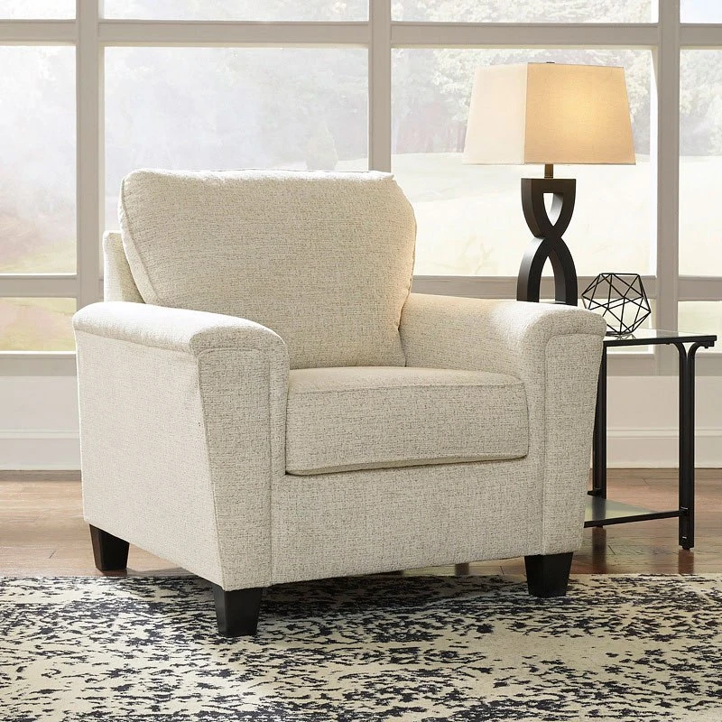 - OverviewIf you’re looking to lighten the mood, you’re sure to find this space-conscious, budget-conscious Abinger chair a breath of fresh air. Covered in a cream-tone chenille upholstery loaded with plush texture, this less-is-more contemporary chair is dressed to impress with angled side profiling and track armrests wrapped with a layer of pillowy softness for that little something extra. Talk about one sensational look.
