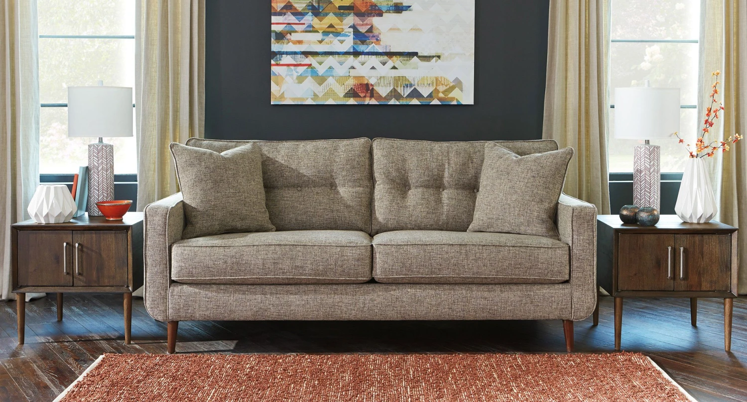 - OverviewThe Chento Living Room Collection by BenchCraft features contemporary style, Jute finish and polyester upholstery. Seats and back spring rails are cut from 7/8″ hardwood. Cushions are constructed of low melt fiber wrapped over high quality foam.