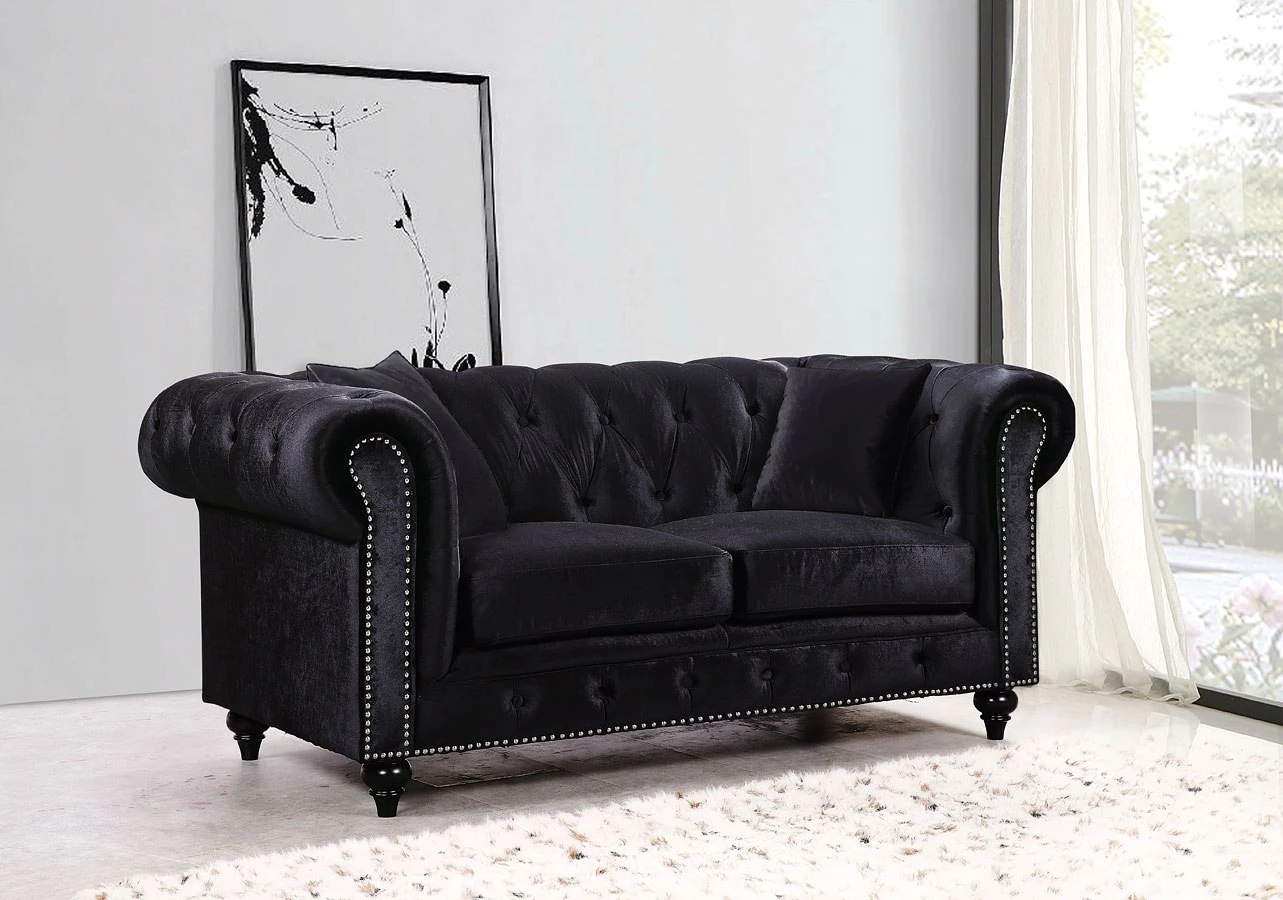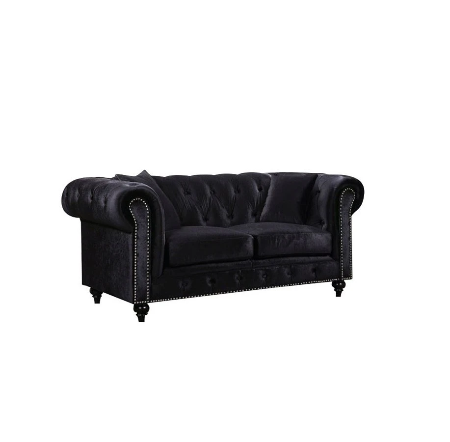 - OverviewElegant and eye-catching, the stunning Chesterfield Collection by Meridian Furniture is the perfect addition to any space. Rich velvet covers the plush, comfortable seat, padded with high-density foam and modern tufted design. Strength and beauty is guaranteed with a solid wood frame and legs. Features a nailhead design on the arms and includes matching throw pillows.
