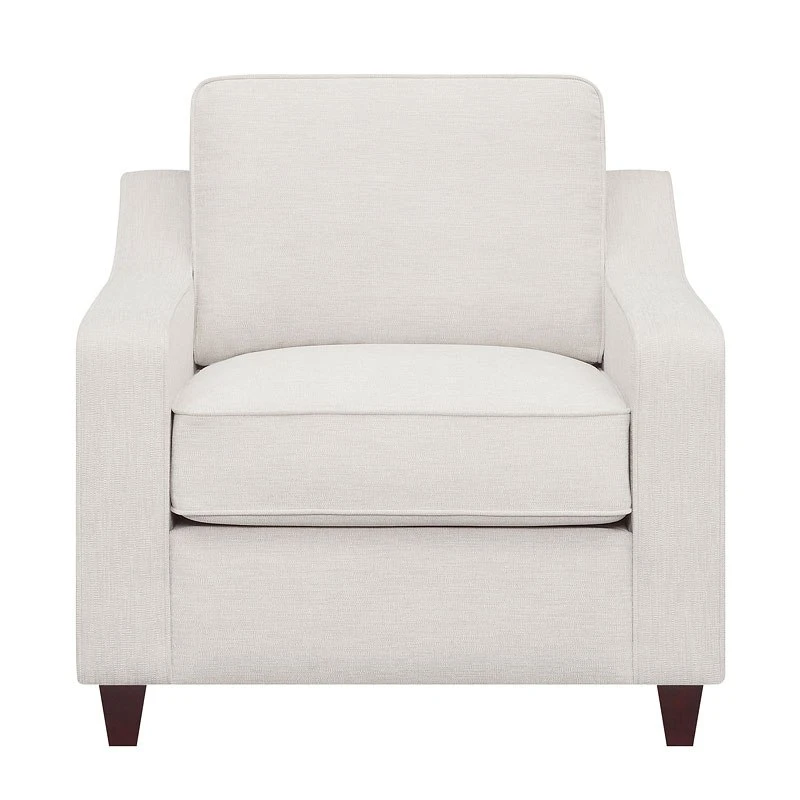 - OverviewBrighten up your space with this easy to use transitional Christine Living Room Collection by Coaster Furniture. Thin slopped track arms, boxed seat and back cushions show of the beautiful tailoring and self welt details. Upholstered in soft low pile textured beige chenille. Tall tapered wood legs in dark brown.