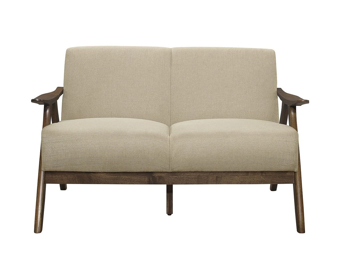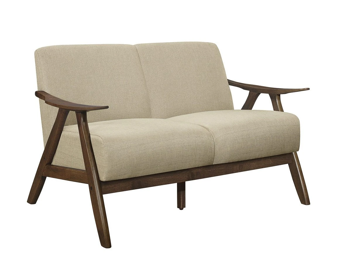 - OverviewThe retro-inspired wood framing of the Damala Living Room Collection by Homelegance will perfectly accent your modern home decor. Subtle contouring to the seating collection’s wood frame is finished in walnut, presenting as a classic complement to the brown fabric that covers the padded seats and backs of the sofa, loveseat and chair.