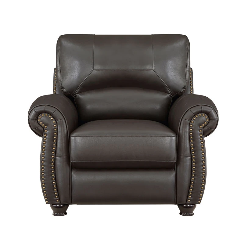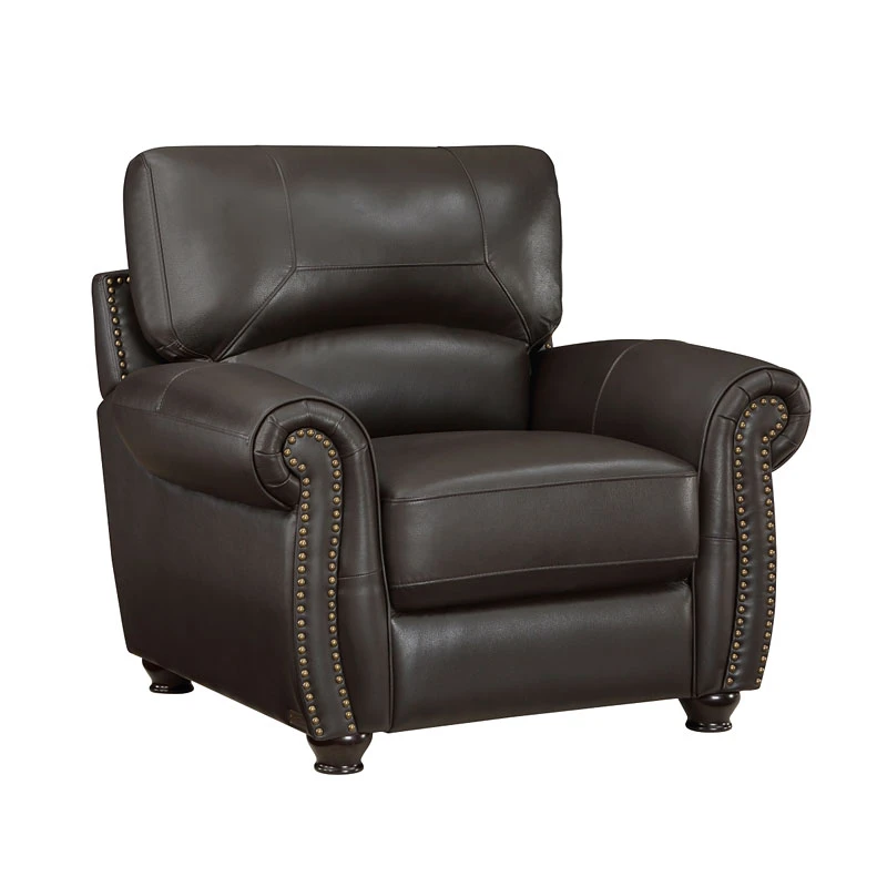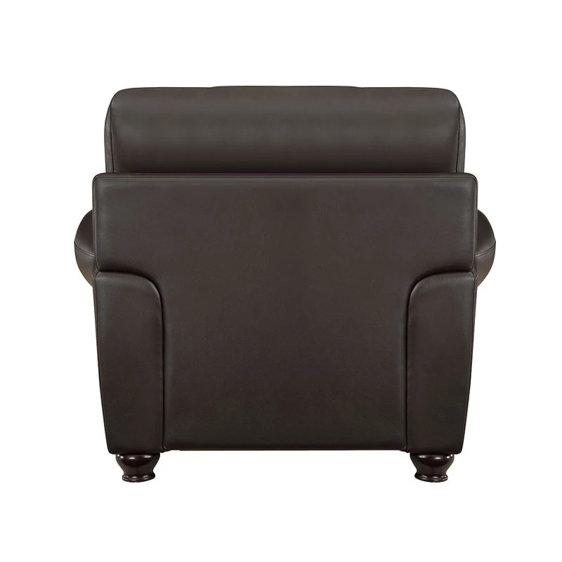 - OverviewTraditional design and classic accents are paired to create the timeless look of the Foxborough Living Room Collection by Homelegance. Dark brown top-grain leather covers the plush seating of the chair everywhere the hand touches – with faux leather match covering the remaining areas. The profile of the seating arrangement is defined by elegantly rolled arms, plush seatbacks, and nailhead trim.