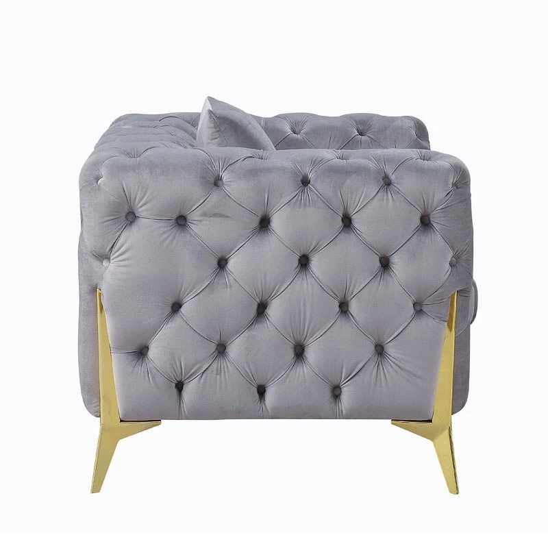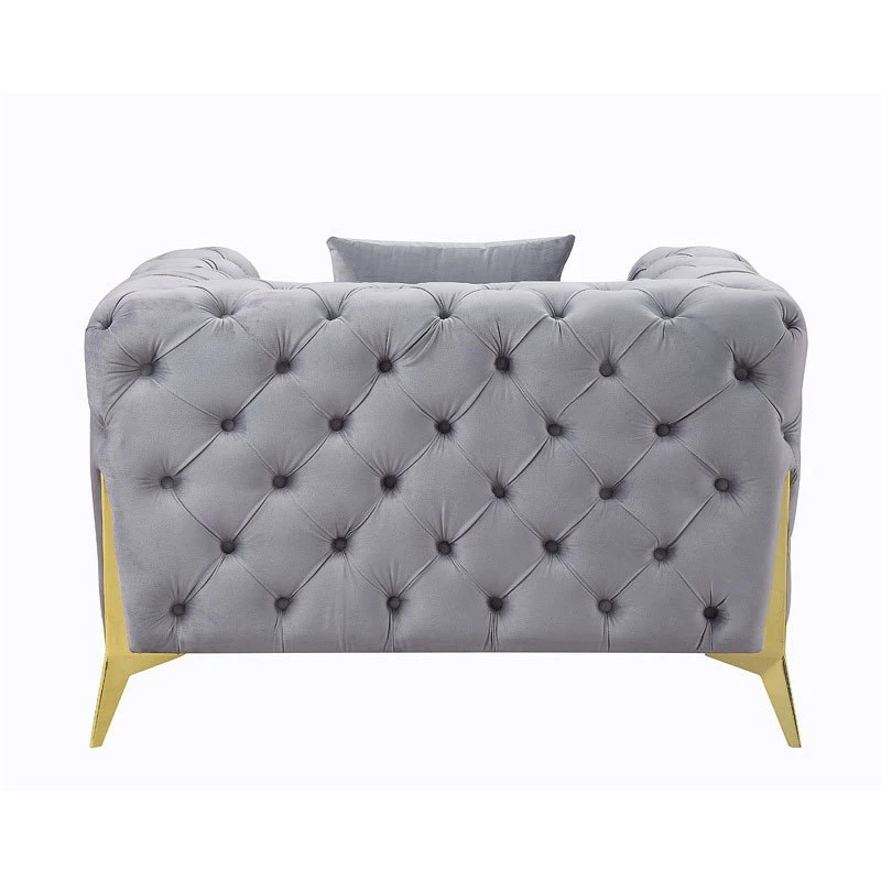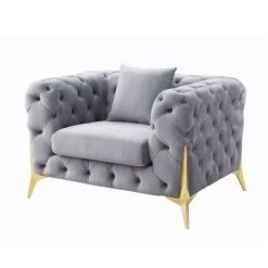 - OverviewThe Jelanea Living Room Collection by Acme Furniture is the ideal solution to reflect your regal tastes. The classic design ensures that the pieces offer timeless appeal. The velvet upholstery brings out the glamorous side of each piece, and the metal gold legs offer a contrast to the soft velvet. Exquisite details, such as button-tufted armrests and back elevate the design. The included accent pillows further add to the comfort level of each piece. Complete your living room with these regal seating options.
