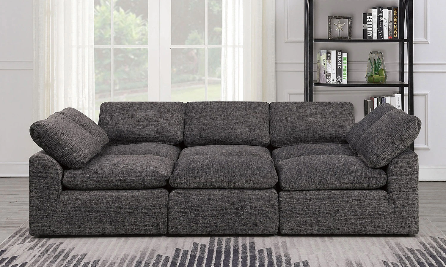 - OverviewThis expansive Joel Living Room Collection by Furniture of America is built for entertaining. The large design can host a weekly movie night or a special sports game with ease. Family and friends will love the soft chenille fabric, loose pillow backs, and airy feather-blend cushions! Mix and match pieces for a truly modular experience!