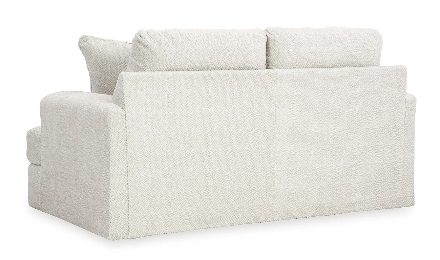 - OverviewCraving casual refinement? This Karinne loveseat by Signature Design has you covered. Its decidedly contemporary frame cradles sizable cushions in an ultra-soft neutral hue, lightening the mood in your living room with simple style and everyday comfort. Solid and geometric accent pillows perfect the chic-meets-cozy vibe.