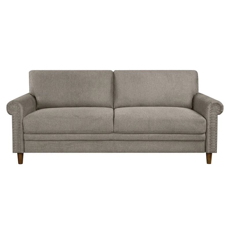 - OverviewThe Kinsale Living Room Collection by Homelegance is a classic pairing of classic elements to create a traditional addition to your home’s living room. The sofa’s rolled arms feature nailhead trim, the accent’s presence lending to the timeless style. The grayish brown fabric upholstery pairs with the walnut finish of the wood support legs, furthering the classic look.