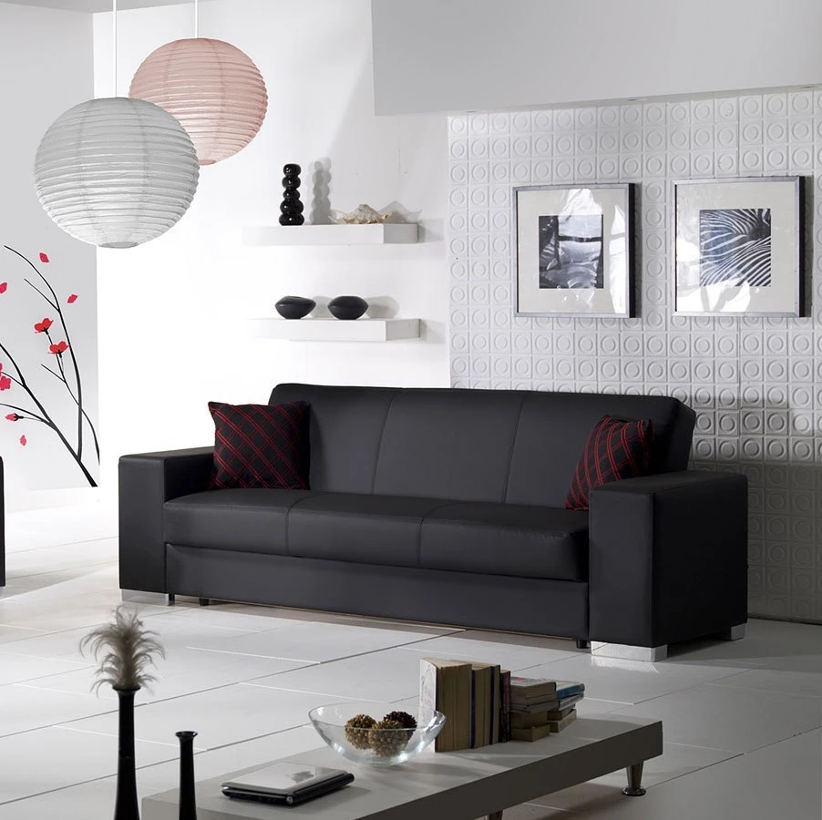 - OverviewThe Kobe 3 Seat Sleeper (Black) from the Kobe Living Room Collection by Bellona Furniture is soft, warm, and inviting. With squared armrests, simple stitching patterns, chrome legs, and modern tones, this collection is perfect for any living space decor.