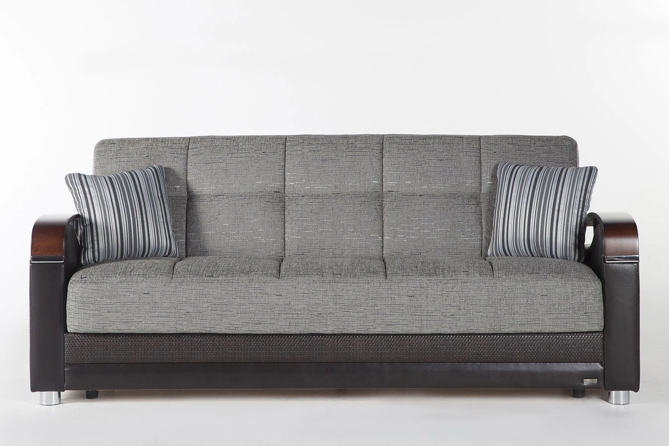 - OverviewThe Luna 3 Seat Sleeper (Fulya Gray) from the Luna Living Room Collection by Bellona Furniture will be an eclectic focal attraction for your living room. The successful combination of different details like woven leatherette sides, all-natural wooden armrests, and chrome legs set the atmospheric dial for comfort and heightens the overall modern appearance.