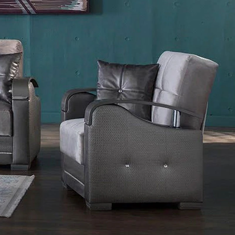 - OverviewThe smart combination of details like shiny gray fabric, all natural wood armrests, and chrome legs set the atmosphere for comfort. The Luna Regal Armchair (Deha Silver) from the Luna Regal Living Room Collection by Bellona Furniture is an eclectic focal attraction for your living area.