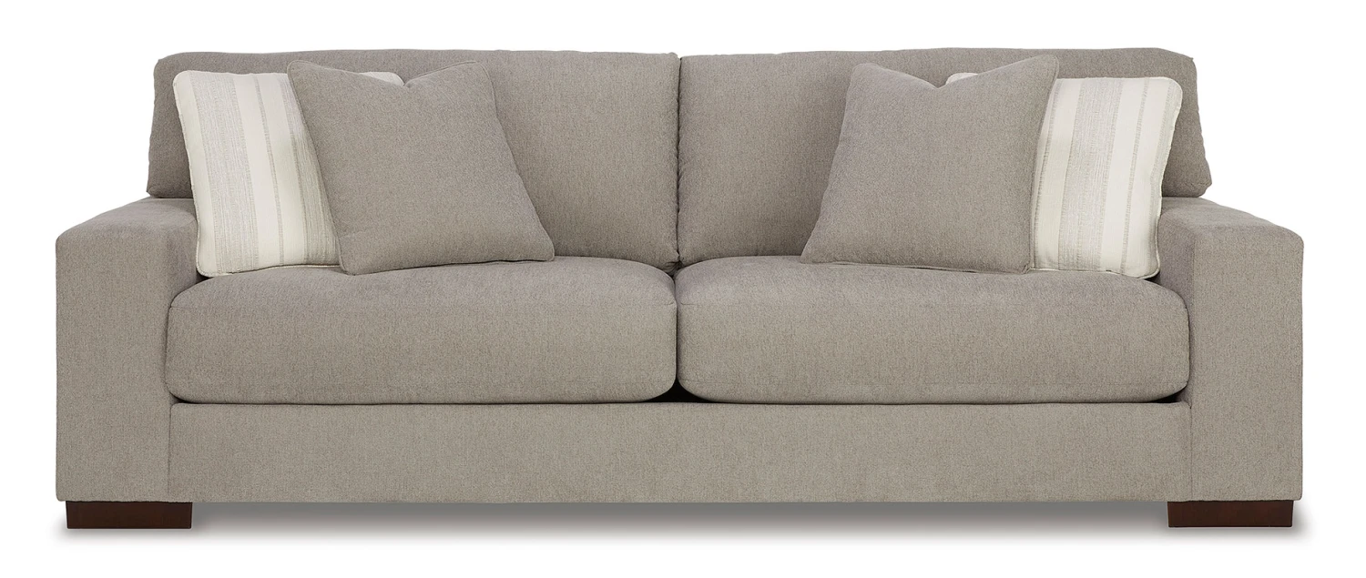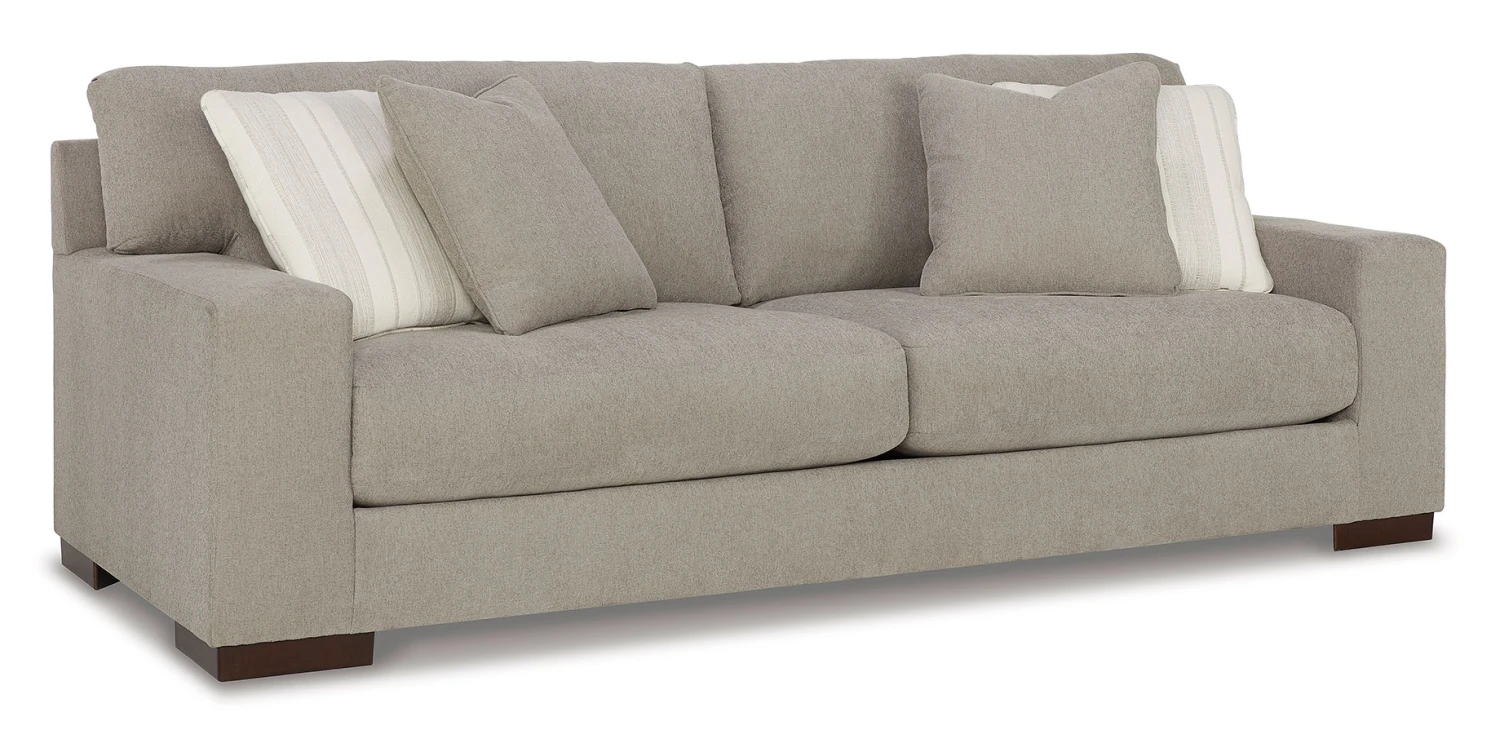 - OverviewClassic comfort gets a mod twist with this Maggie sofa by Signature Design. Its minimalistic approach and structured silhouette bring a clean-lined design element to your living room. Sink into the positively plush cushions while relaxing solo, or curl up with a glass of wine while hosting guests. And with neutral upholstery that suits both casual and contemporary spaces, this sofa offers endless style possibilities.