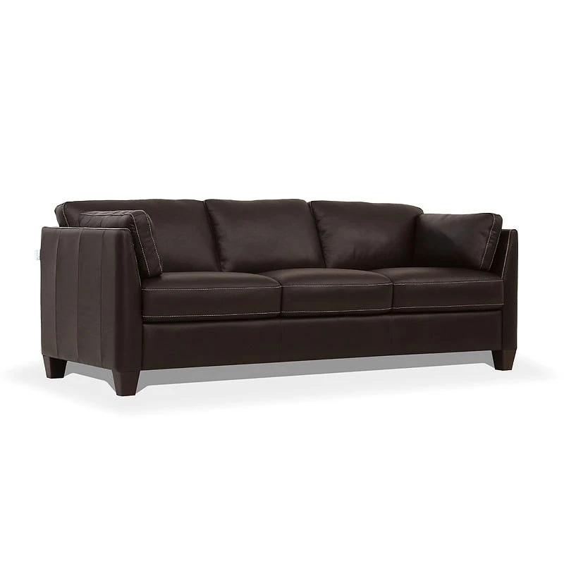 - OverviewThe Matias Living Room Collection by Acme Furniture is one you’ll want to spend lots of time in. This beautiful leather collection features contrast tone stitching and unique wooden block legs. Its deep, comfy seat and sloped style padded arms with pillow give it an incredible sink-right-in quality that’s perfect for the whole family.