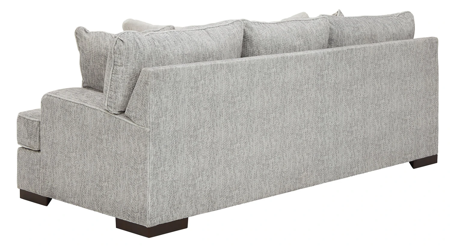 - OverviewAn indulgent choice with deep seats crafted for cloud-like softness, this designer Mercado sofa by BenchCraft is the ideal merger of modern flair and classic staying power. If you love a touch of texture, you’re sure to appreciate this sofa’s gorgeous gray upholstery with subtle chevron effect. Posh toss pillows layered over the loose back cushions perfect the richly relaxed aesthetic.
