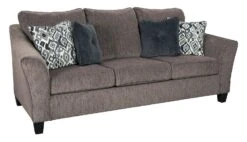 - OverviewIf you love the cool look of leather but long for the warm feel of fabric, you can take comfort in this Navi loveseat by Signature Design. Wrapped in a fabulous faux leather with a weathered hue and hint of pebbly texture to resemble the real deal, this decidedly modern loveseat proves less is more. Elements include angled side profiling and track armrests wrapped with a layer of pillowy softness for that little something extra. Prominent jumbo stitching and clean-lined divided back styling lend fashion-forward flair.