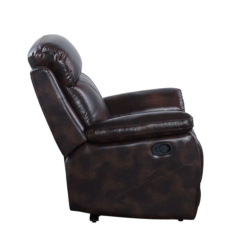 - OverviewIt is no secret that everyone fights over who gets to sit on the recliner. Recliners are the comfiest seat in the house, the Perfiel Living Room Collection by Acme Furniture will solve that issue. The collection has manual reclining seats. Reclining to a 155-degree angle for optional relaxation. The dark brown top grain leather upholstery adds sophistication to the collection.