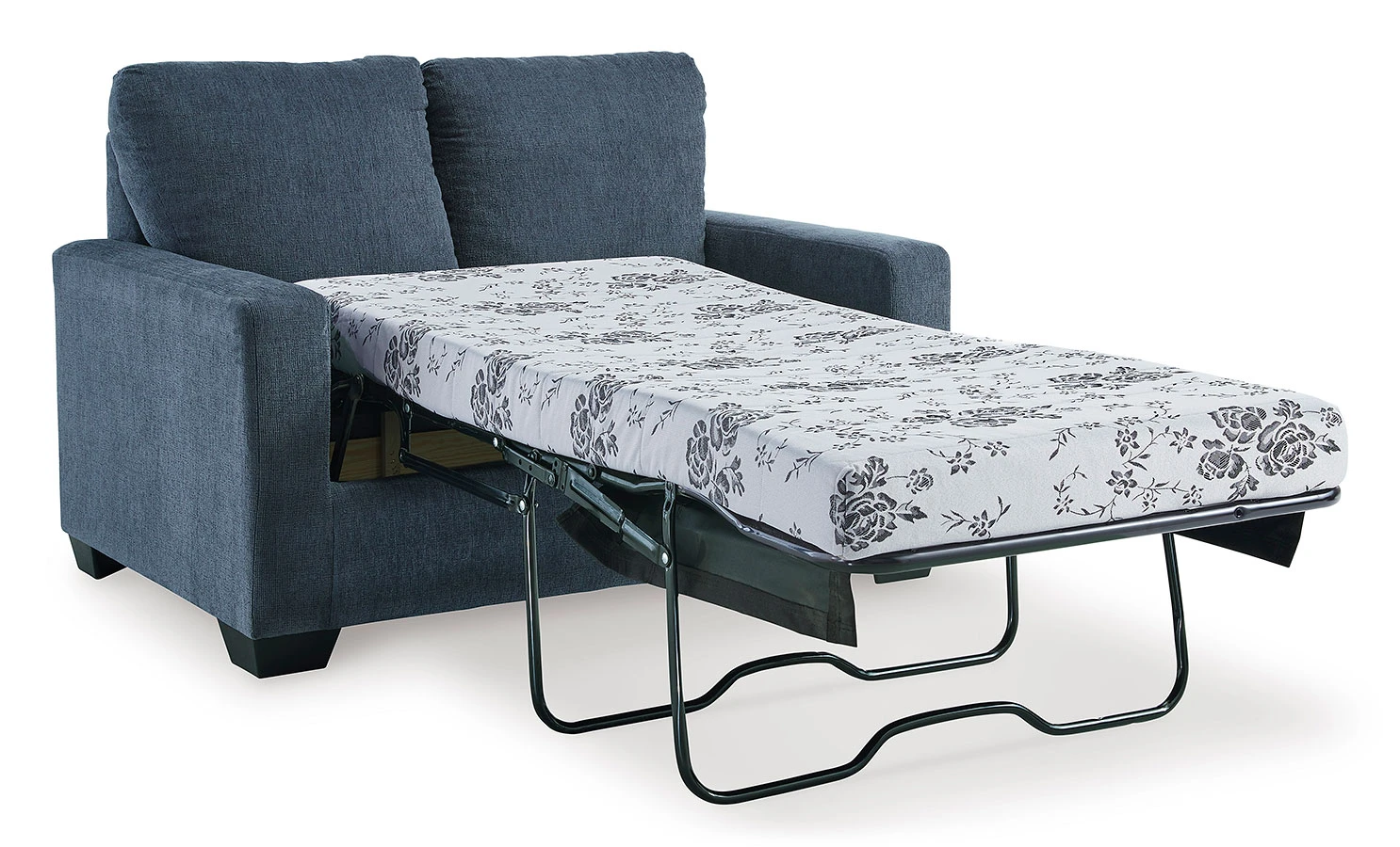Included bi-fold twin memory foam mattress sits atop a supportive steel frame