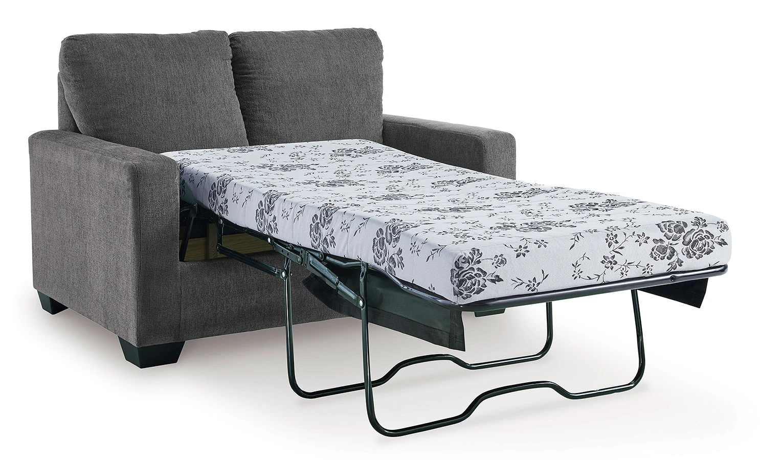Included bi-fold twin memory foam mattress sits atop a supportive steel frame