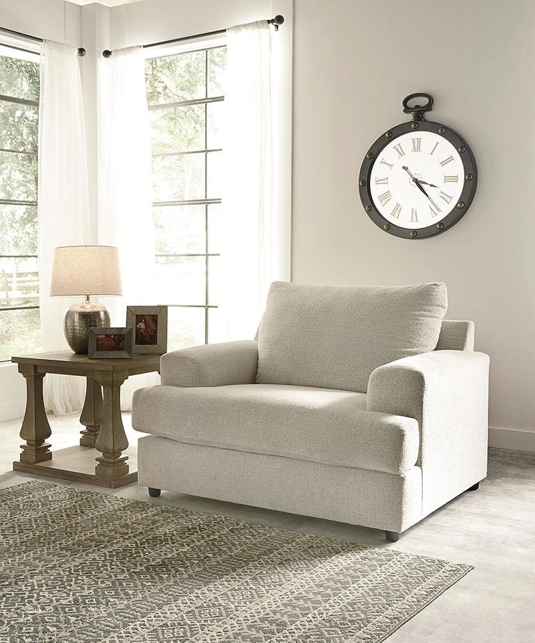 - OverviewFlaunting a trendsetting silhouette, the Soletren chair and a half by Signature Design puts the contemporary in your contemporary home. Seating space is ample, giving you elongated plushness for deep relaxation. Chunky chenille fabric satisfies your need for a piece that feels as good as it looks.