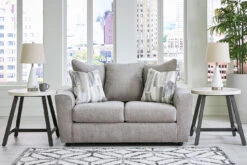 - OverviewThe Stairatt Living Room Collection by Signature Design features contemporary style, polyester upholstery and Anchor color. Seat and back rails are cut from mixed hardwood, engineered lumber, and panel board. Cushions are constructed of low melt fiber wrapped over high quality foam.