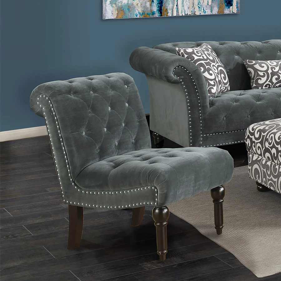 - OverviewThe elegant, yet glamorous Twain Collection by Elements Furniture is the perfect way to create a look of high-end fashion in your very own home. This Hollywood glam design features diamond-stitched tufting with buttons and a chic nailhead trim for a touch of edgy sophistication. Lovely tapered legs and stylish scrolled arms and backs complete the look of this charismatic collection.