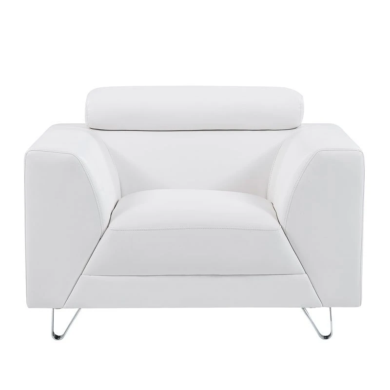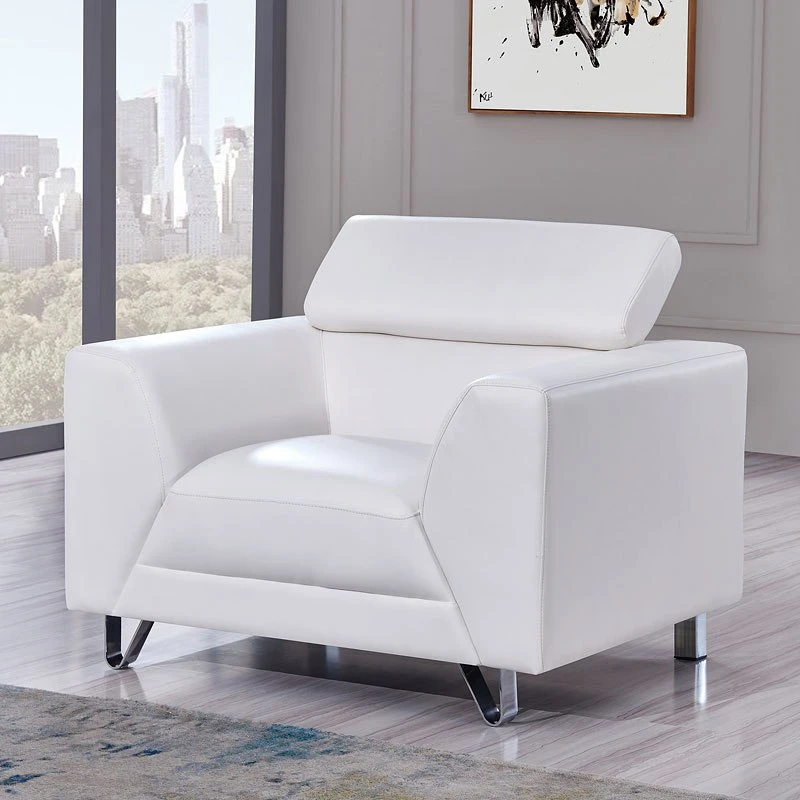 - OverviewClean lines define this white, upscale contemporary styling of the U8210 Living Room Collection by Global Furniture. Lean into the generously tapered inside arms and adjustable headrests for a floating effect – given the lustrous chrome hairpin legs, you’ll look like it, too.