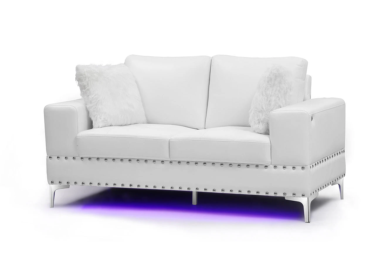 Nail heads, LED under lighting and chrome legs - DepartmentLoveseats