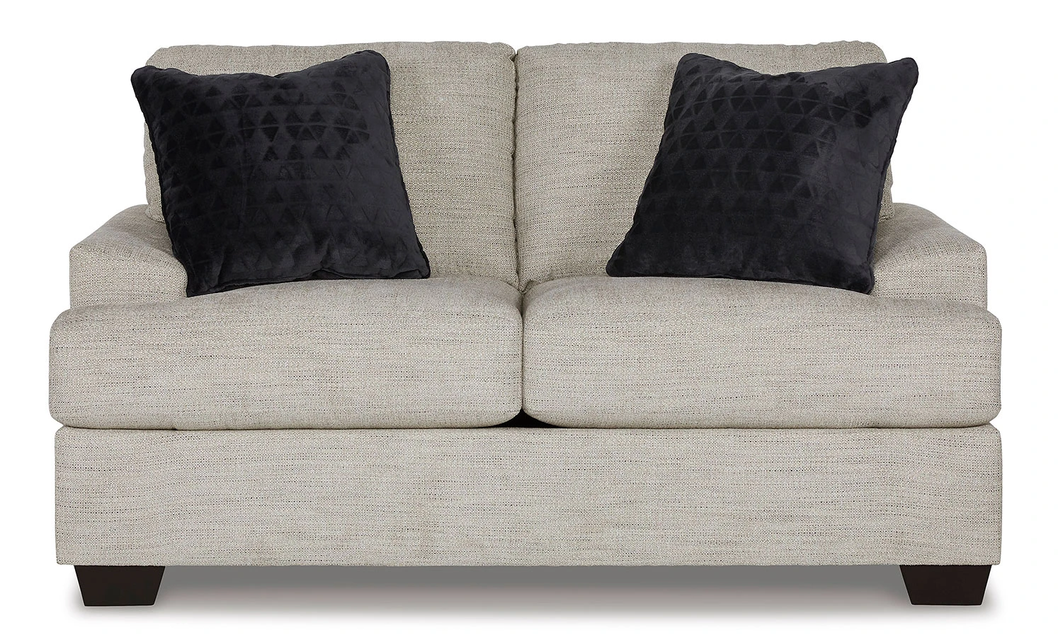 - OverviewLaid-back luxury meets neutral practicality in this Vayda loveseat by Signature Design. Taking its cues from contemporary design, the clean-lined piece is outfitted with angular arms for a layer of geometric expression. Softly upholstered, sizable cushions keep you comfortable, while black faux fur accent pillows bring a touch of soft glam. With this loveseat, winning style and superb functionality go hand in hand.