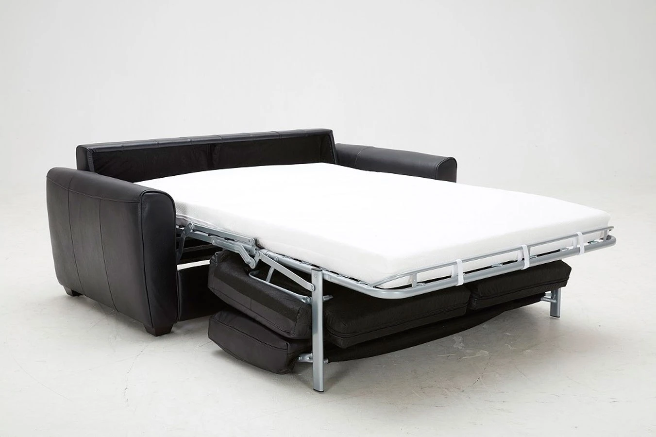 - OverviewGorgeously upholstered in a thick durable Black Premium Leather, the Ventura Sofa Sleeper by J&M Furniture integrates functionality in a clean, sophisticated design. Whether you are looking for seating options or extra bedding option for guests during holidays and extended stays the Ventura Premium Sofa Bed is an ideal solution. This sofa bed features a nice plush memory foam mattress for comfort.