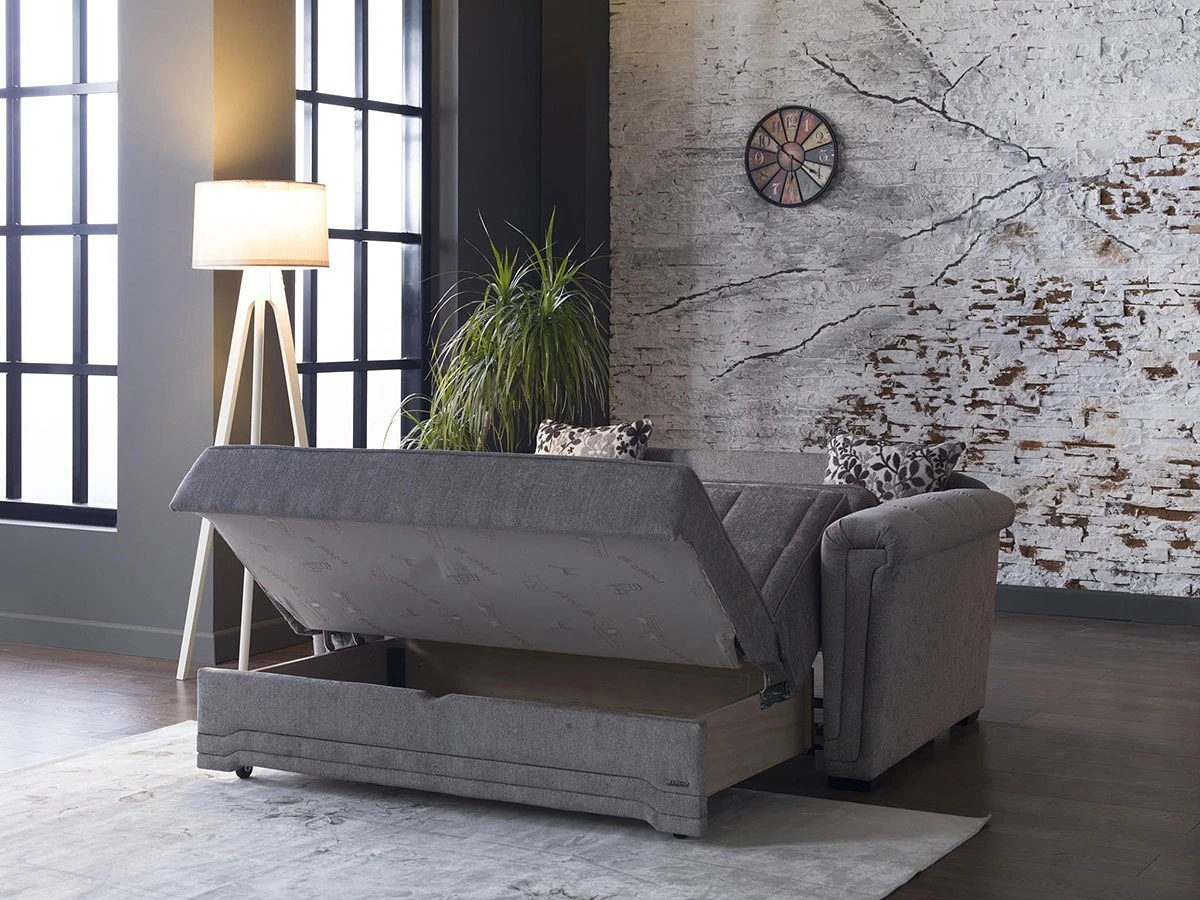 - OverviewThe Victoria Loveseat Sleeper (Valencia Gray) from the Victoria Living Room Collection by Bellona Furniture is a transitional piece that comes with two contrasting decorative pillows, and a mattress pad for the best sleep experience. With its lavish stitching and widened armrests, this loveseat sleeper is the luxury piece that you’ve been missing.
