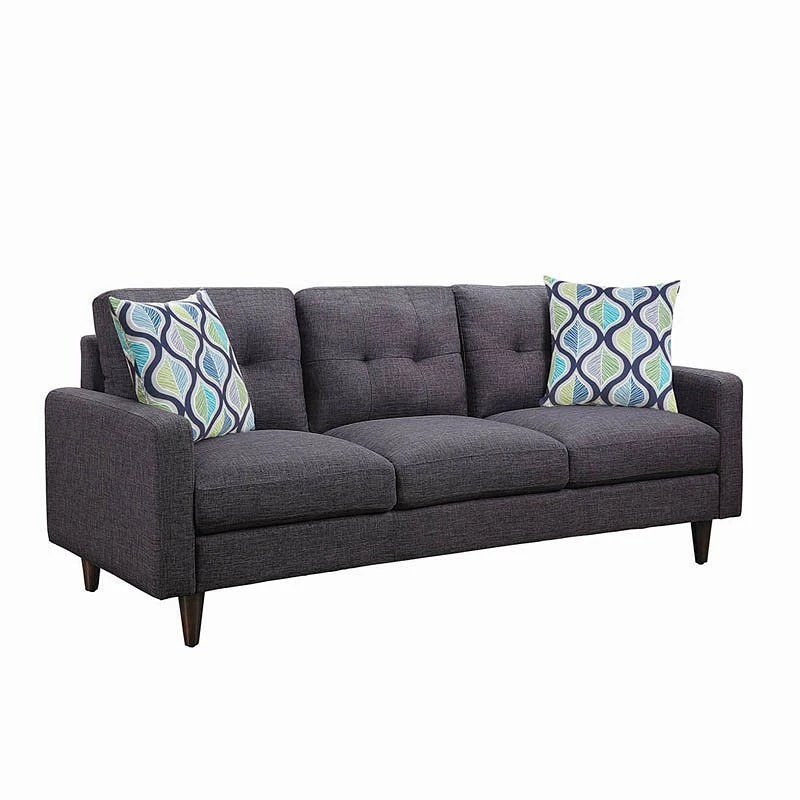 - OverviewThe Watsonville Living Room Collection by Coaster Furniture is the perfect addition to any small and chic space. With retro inspired tapered legs and tufting details on the back cushions, it is sure to make a statement. Accent pillows in modern print are included with the collection.